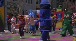 Apparition du boss en personne (mais aussi Snoopy et Hello Kitty !) dans la parade à la fin du film La course au jouet (Jingle All the Way), avec notre Arnold Schwarzenegger adoré, qui passe une bonne journée de merde à la recherche d'un Turbo-Man pour son fils !