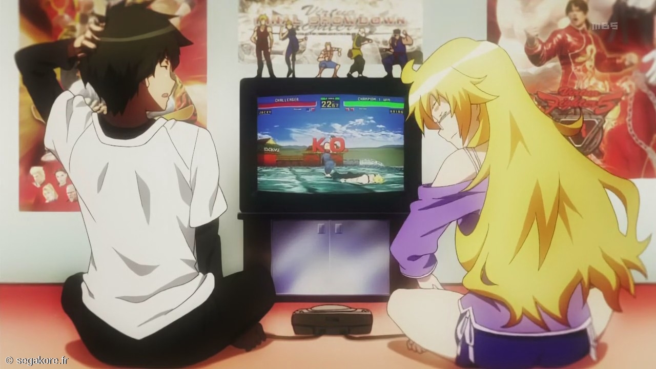 Dans le coquin et délirant animé Ben-To, contant l'histoire d'étudiants qui se battent à la mort pour des bentô à moiti prix (oui, oui, vous avez bien lu !), le héros, Yô Satô, ayant grandi avec la Sega Saturn de ses parents, est fan du jeu Virtua Fighter 2 ! Du coup, c'est un déluge d'apparitions, avec bien sûr la Saturn, le fameux Virtua Stick 2, le jeu Virtua Fighter 2, sans oublier le hérisson bleu, archi présent lui aussi ! Et ce ne sont pas les seules références !