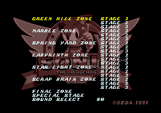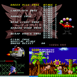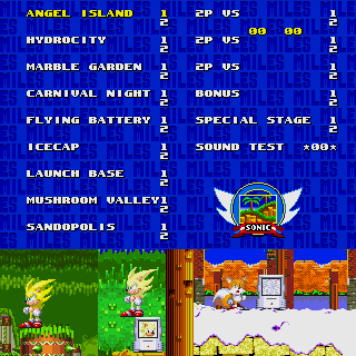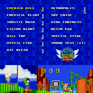 Au démarrage du jeu lorsque Sonic se matérialise en boule derrière le logo Sega, il faut presser très rapidement les touches Remarque : le Control Mode est activé par la même occasion.Mode d'emploi Trop difficile ? Savestate pour KGEN, GENECYST et GENS
