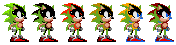 Ainsi Sonic devient, dans le cas le plus général, vert et noir, mais il y a de nombreuses variantes (en se déplaçant sous les cascades) comme le montre cette image :