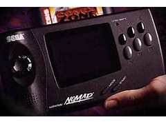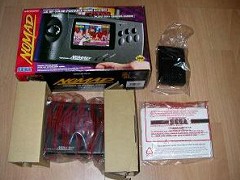 La Nomad est une console portable aussi basée sur la Mega Drive 2, développée par Sega of America et sortie uniquement aux USA. Il s'agit en réalité d'une Mega Jet (l'inspiration saute aux yeux) à laquelle on a intégré un écran LCD à matrice active (on voit l'image même de côté) et un haut-parleur pour en faire une véritable console portable. Tout comme la Mega Jet, elle permet aussi de jouer sur une TV et à 2 joueurs grâce à un port manette supplémentaire se trouvant sous la console. La console ne possède pas de compartiment intégré pour les piles, elle est vendue avec un boîtier qu'on peut fixer à l'arrière et contenant 6 piles pour une autonomie de 3 à 5h, voire moins de 2h avec des piles rechargeables (accus)... Vous l'aurez compris, la Nomad est une fantastique portable mais elle a un très gros point faible : sa consommation ! Il existerait un prototype européen (PAL) de la Nomad qui était aussi prévue en Europe mais qui n'est finalement pas sortie car la Mega Drive était déjà en déclin en 1995...