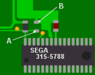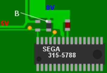 Sur un 32X européen, on a donc par défaut la broche 17 reliée à 0V par le biais d'une petite résistance, et à +5V sur un 32X américain ou japonais.
