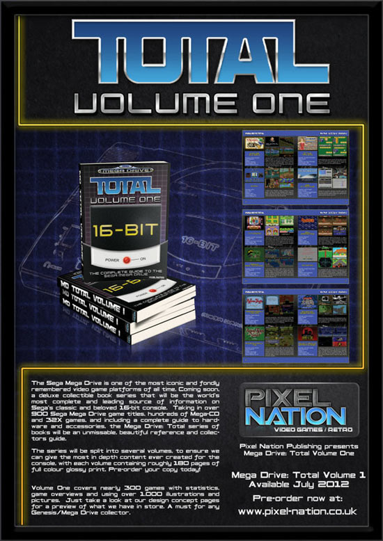 Pixel Nation, un éditeur indépendant britannique spécialisé dans les jeux vidéo, l'histoire de l'art, la culture, et le design, va sortir en juillet prochain le premier volume d'une série d'ouvrages intitulée Mega Drive : Total.