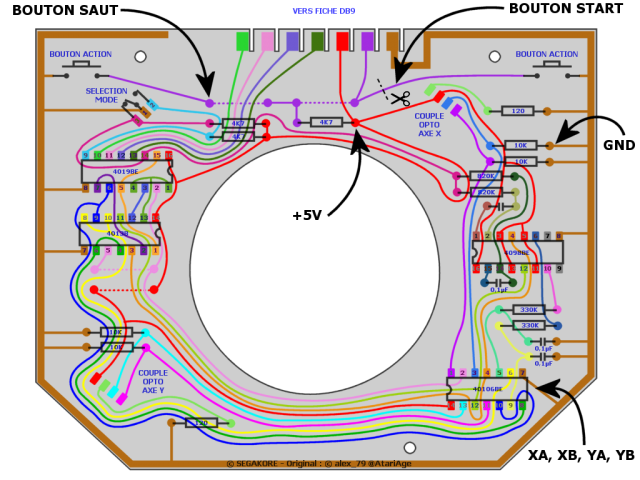 | « cas 2 » : | vous sacrifiez ce trackball, car vous ne prévoyez pas de l'utiliser pour autre chose que SegaSonic, dans ce cas vous utilisez le câble déjà présent, et n'aurez pas besoin des éléments suivis d'une * ci-dessous |