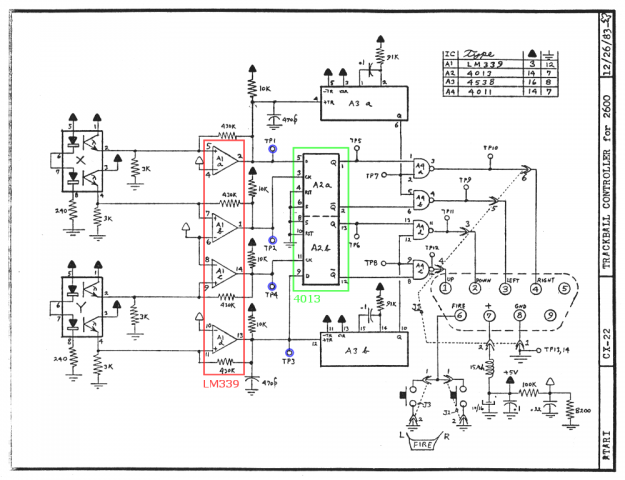 Les points qui nous intéressent sont, comme je le disais, clairement identifiés en sortie du LM339 (attention : pas directement sur ses broches) normalement comme suit :