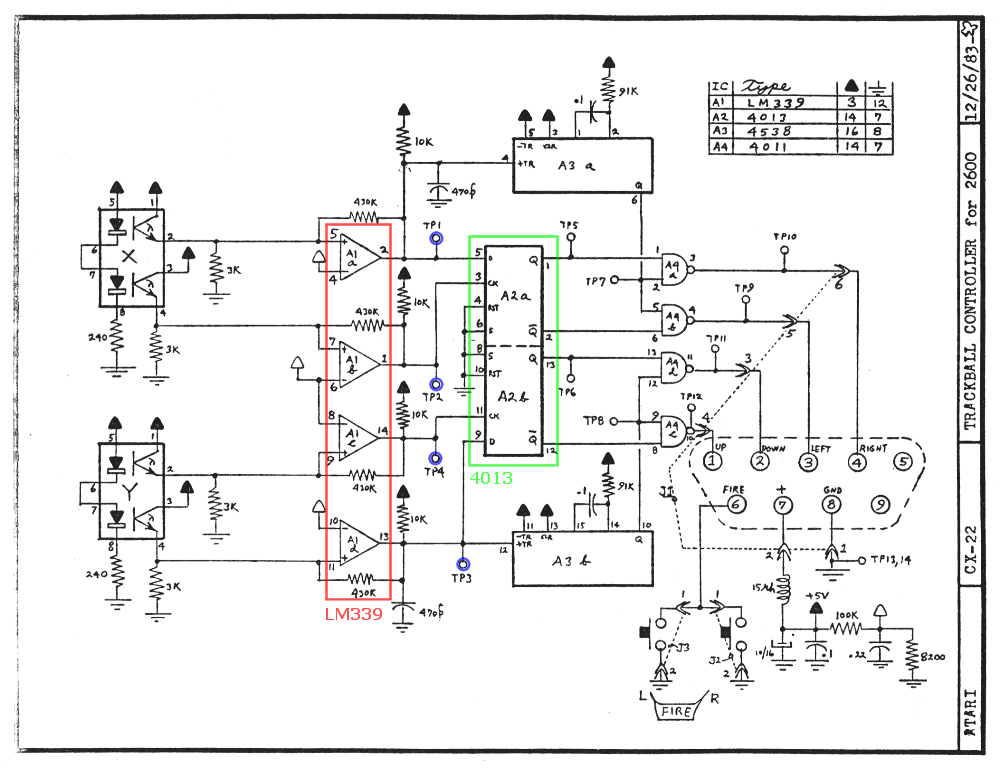 En se basant sur le schéma de la carte électronique du CX-22, on s'aperçoit qu'il n'y a pas de composant HCF 40106BE, remplacé ici par un LM339, réalisant une opération similaire :