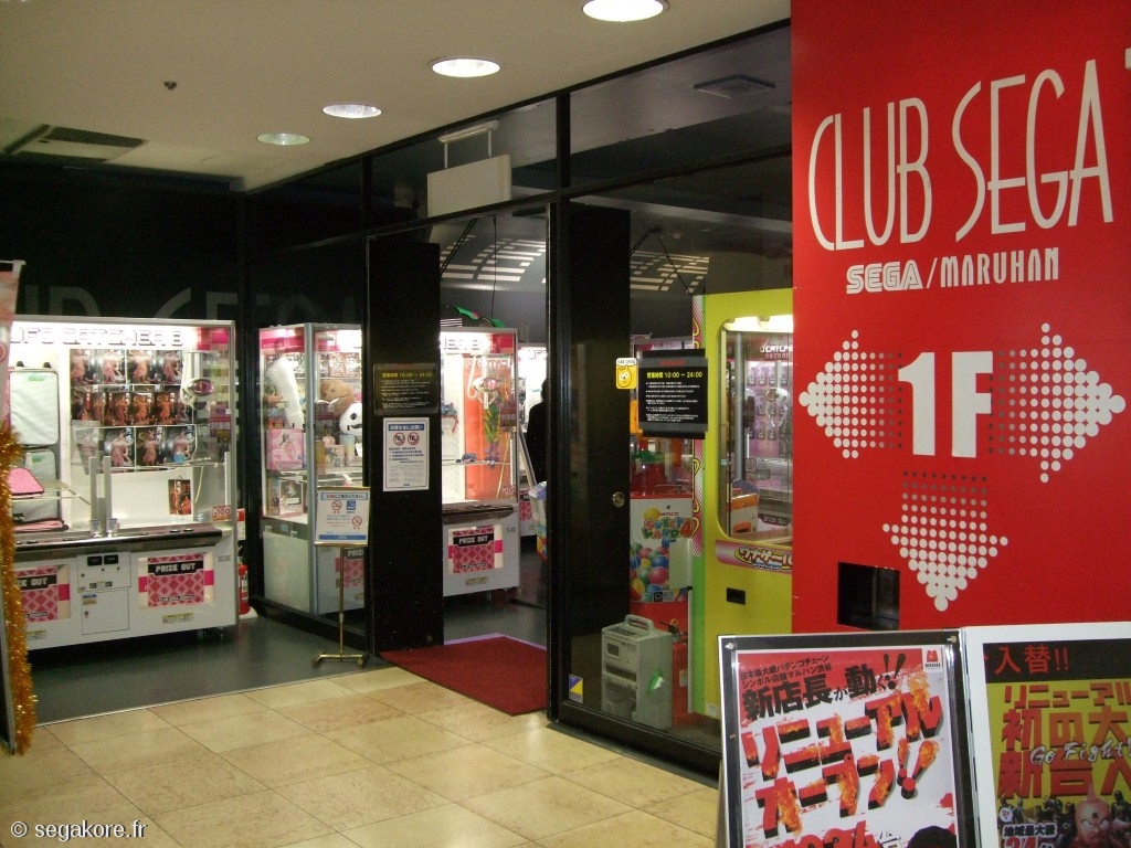 Salle de jeux Club Sega, partageant certains étages avec Maruhan (pachinko),dans le quartier de Shibuya à Tokyo, à quelques pas de la gare.Cette salle a malheureusement fermé ses portes fin Janvier 2016