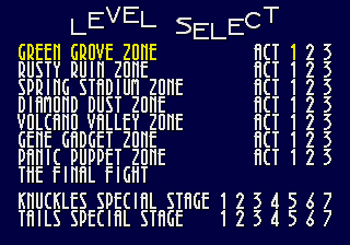 Lorsque la cartouche de "Sonic & Knuckles" est associée à Sonic, il ne se passe rien, un message "NO WAY ! NO WAY ! NO WAY ! NO WAY ?" apparaît et on ne peut rien faire. Lorsque Sonic & Knuckles est combiné avec Sonic 1, le nombre de bonus stages est quasi illimité (supérieur au million) ! |