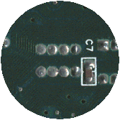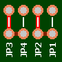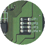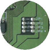 Il va falloir ensuite localiser sur la carte un groupement de jumpers, JP1, JP2, JP3 et JP4. Un jumper est un couple de pads liés par un trait blanc ![]()