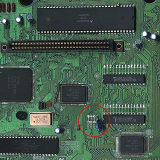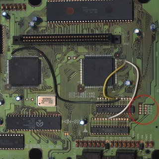 Dans le cas de la Mega Drive japonaise HAA-2510 (composant 315-5433, broches 71 et 72), voici ce que ça donne :
