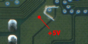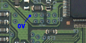 | Pad de la broche 107 avec groupe de pads +5V | Pad de la broche 46 avec groupe de pads 0V |