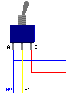 NB : si vous utilisez des interrupteurs à levier, comme ceux sur le schéma ci-dessus, selon la marque, la position du levier peut différer par rapport à la paire de broches en contact, c'est à dire être soit en opposition (comme sur le schéma, le plus courant), soit coïncider...