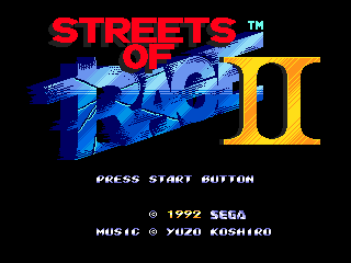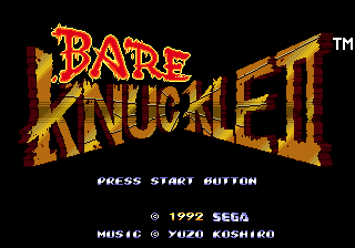 Encore la mention "TM" qui fait son apparition au logo SEGA sur les consoles occidentales. Un écran de titre avec "Bare Knuckle II" en japonais et logiquement "Streets of Rage II" en Europe, par contre les américains ne semblent pas apprécier les chiffres romains et on préféré opter pour "Streets of Rage 2" (valable aussi sur la jaquette du jeu)... Quant au menu principal, le mode "Battling" en japonais est renommé en "Duel" en occident.