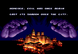 Encore l'écran de présentation démarrant plus bas en Europe avec la ville au complet. Le jeune frère de Adam, "Sammy" en japonais est renommé "Skate" en occident.