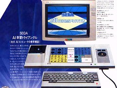 Probablement l'ordinateur familial le moins connu et le plus rare qu'ait produit SEGA. Le "AI" dans son nom fait référence à Artificial Intelligence, ce qui en dit long sur les possibilités de cet ordinateur, véritablement en avance sur son temps ! Fonctionnalités : programmation, tablette graphique, reconnaissance vocale, compositeur de musique, panneau tactile utilisable avec 5 fiches (clavier de piano, calculatrice,...), etc.