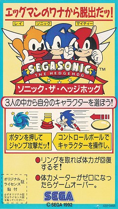 SegaSonic ne possédant pas de borne dédiée (une borne spécialement conçue pour lui, une tendance plutôt américaine que japonaise), il peut être exploitable, au vu de sa documentation, dans 5 bornes génériques de Sega, dont une seule autorisant 3 joueurs: