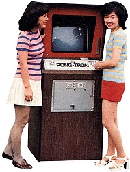 | Pong-Tron est le tout premier jeu vidéo sorti au Japon. Il est suivi de très près par l'équivalent de Taito, sorti la même année sous le nom de Elepong ! | ||