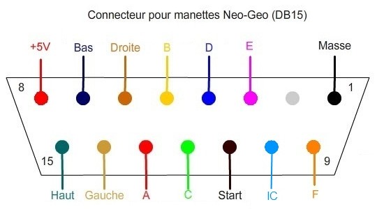 Pour les boutons SAUT et START, il vous faut bien évidemment trouver des connecteurs adaptés à votre supergun ; la connectique la plus courante étant celle employée par les sticks Neo-Geo, à savoir "DB-15" (D-Sub DA-15).