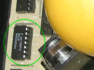 Ce trackball étant très proche du CX-80 (il précède ce dernier de quelques mois), il fonctionne de façon très similaire, et peut donc globalement se voir appliqué le hack précédent. Le CX-22 présente en plus deux avantages sur son petit frère : les signaux qui nous intéressent sont clairement identifiés sur la carte mère, et l'intérieur est bien plus spacieux pour pouvoir éventuellement y ajouter une connectique intermédiaire, si on se trouve dans le « cas 1 » :